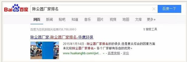 三、除尘器厂家排名这个关键词之所以取得第一名,原因分析: